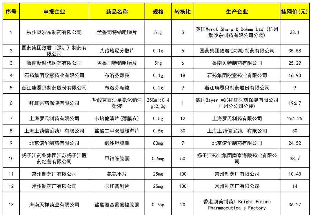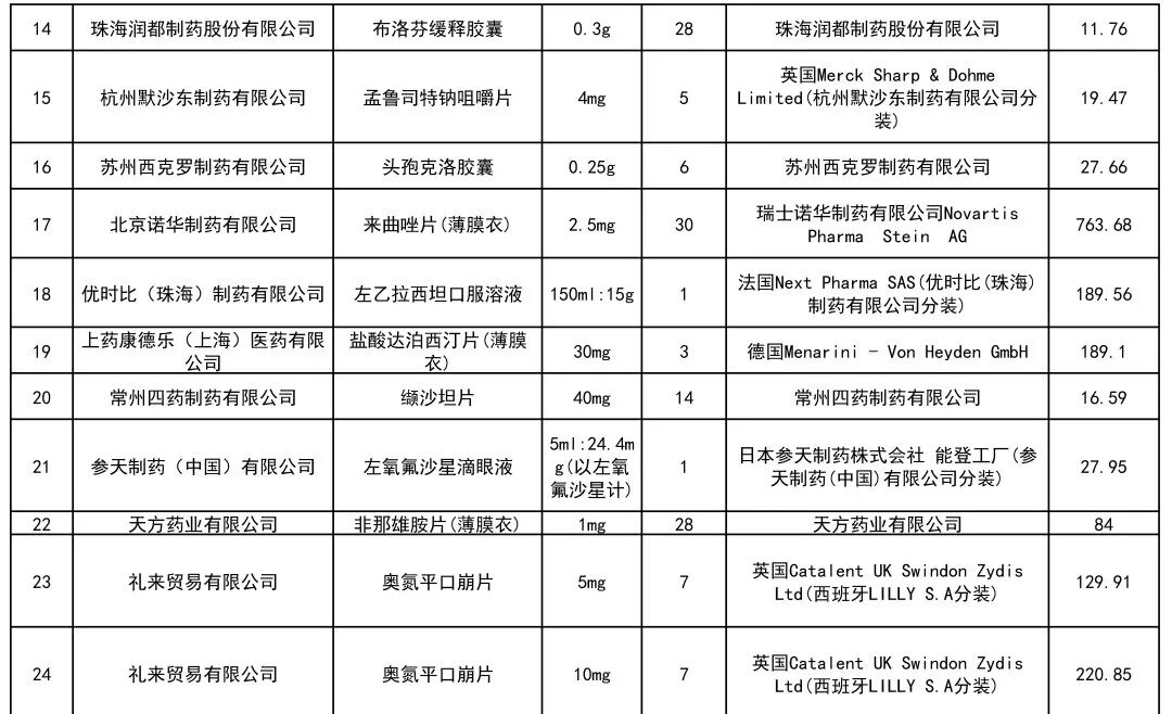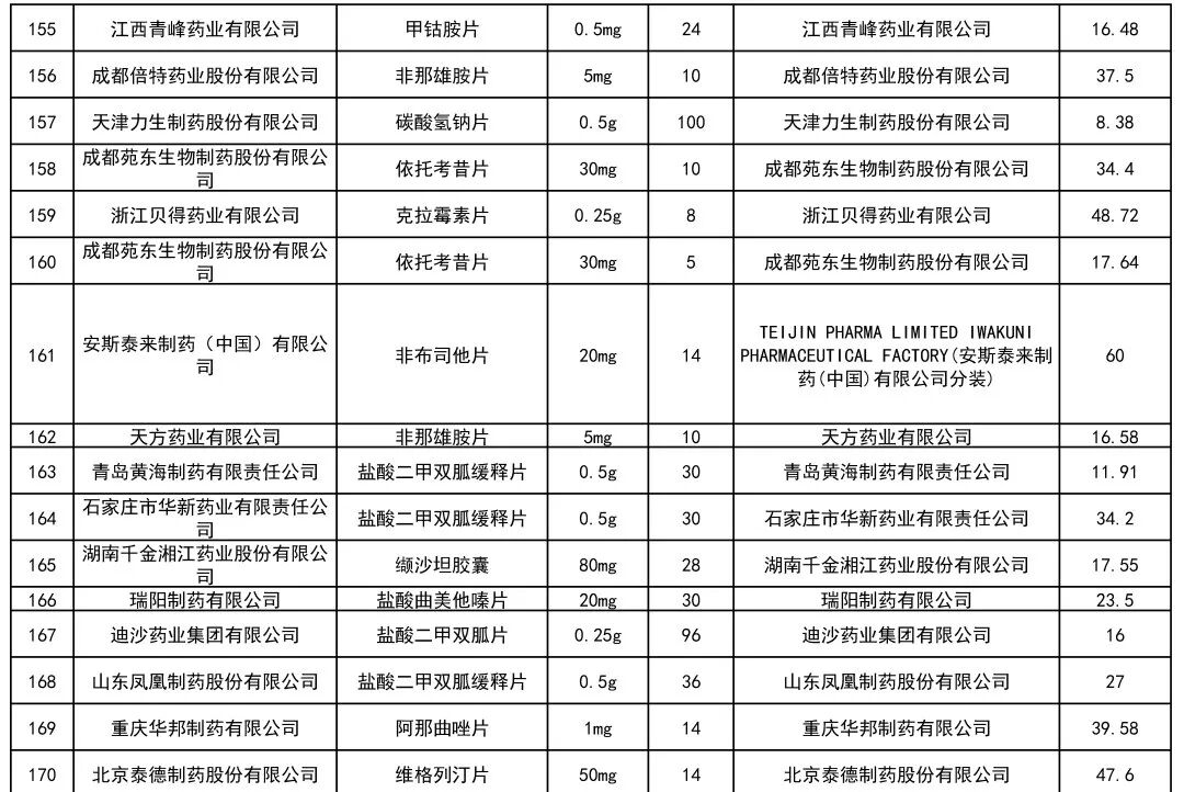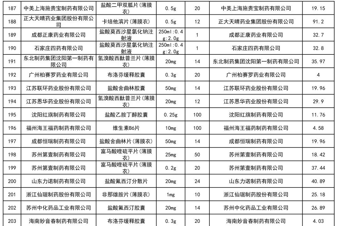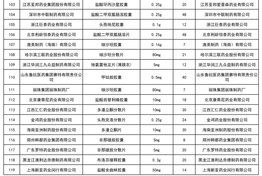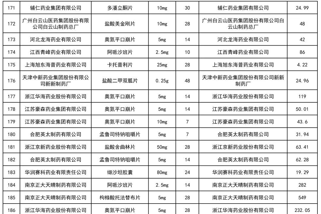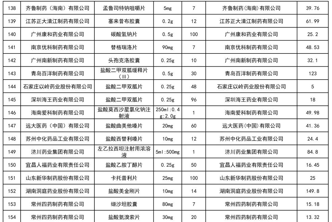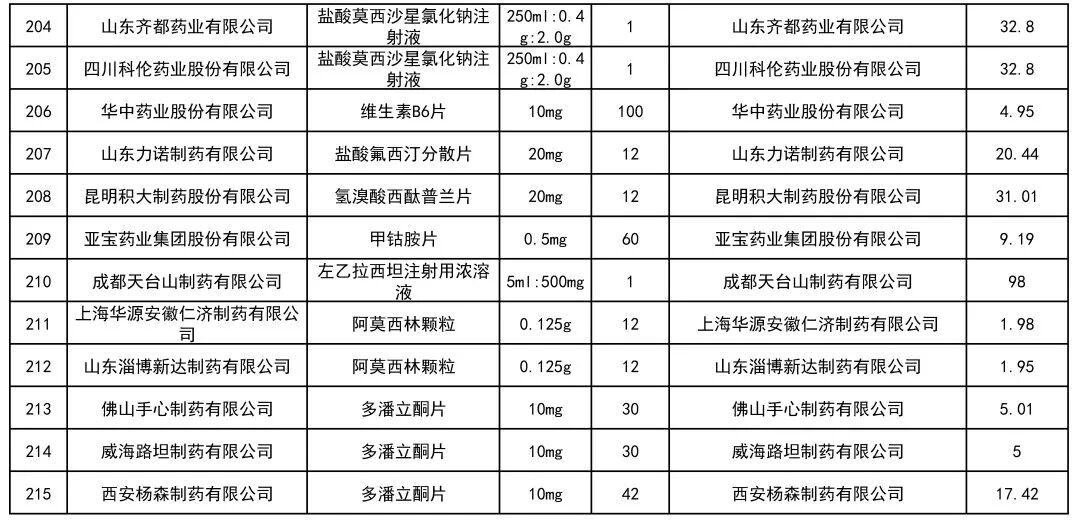 本批涉及价格调整的包括:国药致君的头孢地尼分散片、石药欧意的布洛芬颗粒、扬子江药业的甲钴胺胶囊、鲁南医药的孟鲁司特钠咀嚼片等215个药品。具体价格详情如下: