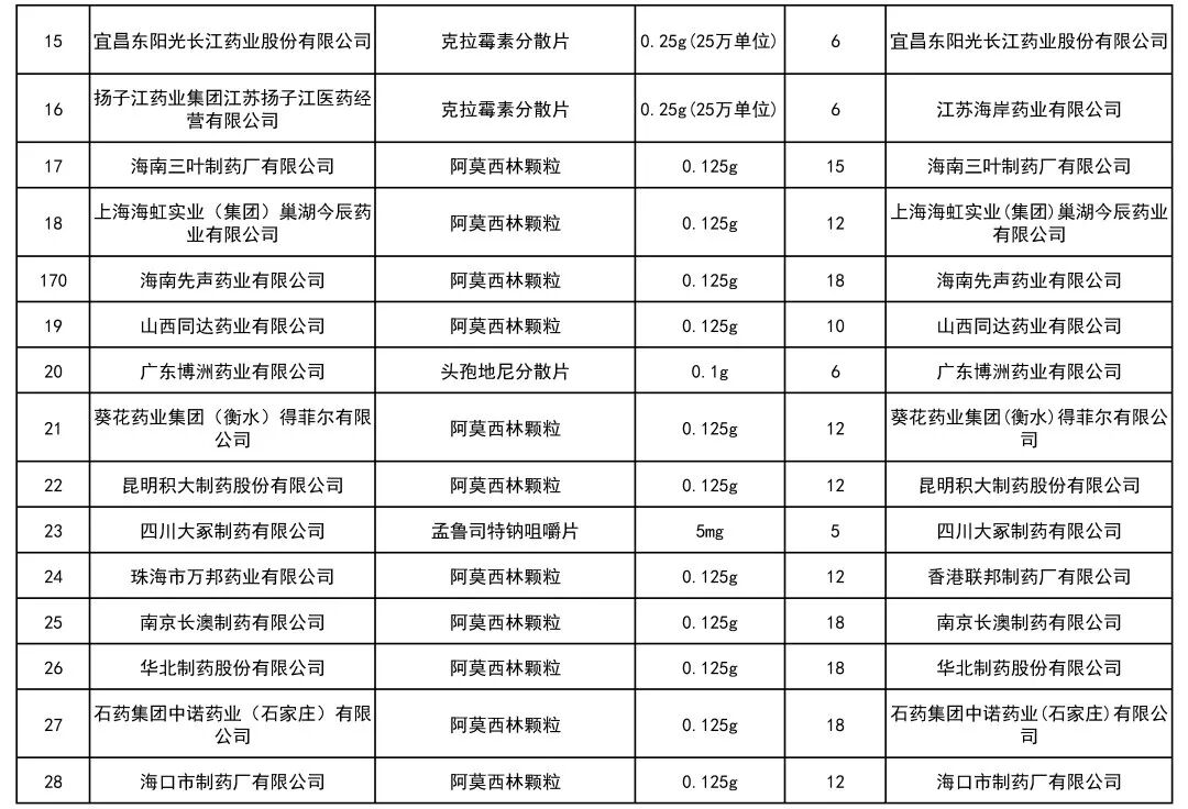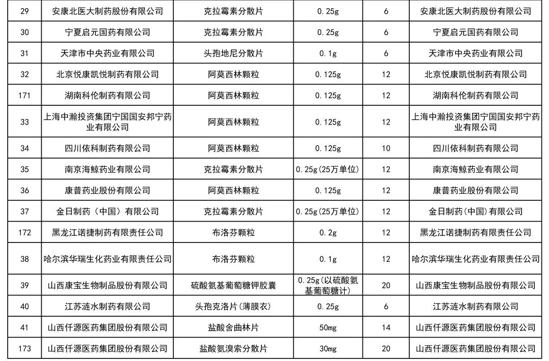 赛柏蓝梳理后发现,此次暂停采购的品种涉及多家知名药企,比如江苏正大丰海的盐酸莫西沙星氯化钠注射液、重庆科瑞制药(集团)有限公司和华北制药的阿莫西林颗粒、宜昌东阳光长江药业股份有限公司的克拉霉素分散片、湖南科伦制药有限公司的阿莫西林颗粒、华润双鹤药业股份有限公司的匹伐他汀钙片(薄膜衣)、石药集团欧意药业有限公司的甲钴胺片……