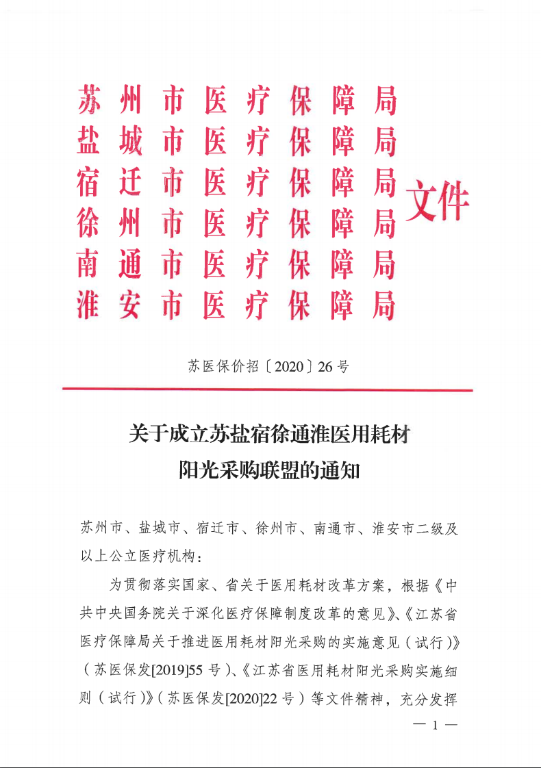 此份通知正是响应了2020年4月份江苏省医保局发布的《江苏省医用耗材阳光采购实施细则(试行)》,文中明确提出“鼓励区域组成采购联盟,对普通医用耗材、检验检测试剂中部分产品实施带量采购或价格谈判。区域采购联盟范围不得少于5个设区市。”