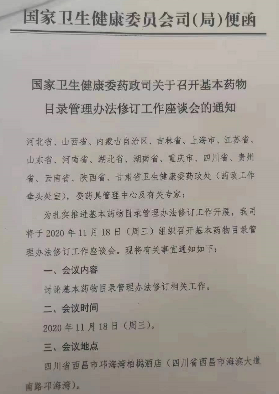 与此同时,在国家医保目录即将水落石出的同时,国家基药目录调整工作也正在紧锣密鼓地开展中。据业内人士透露,今日,相关部门拟于近期组织召开国家基药目录管理办法修订工作的座谈会,邀请16个省的相关主管部门,讨论管理办法修订的有关工作。