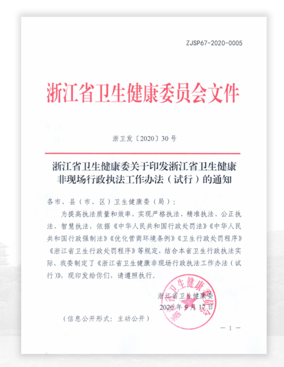 在医疗监管方面,近日,《浙江省卫生健康非现场行政执法工作办法(试行)》(以下简称《办法》)正式施行,《办法》的施行,将为卫生健康领域非现场执法开启大门。