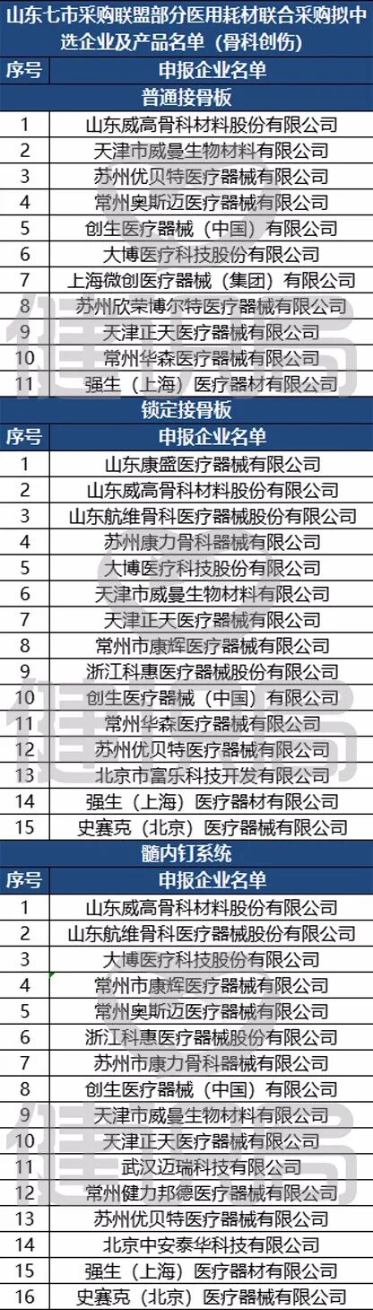 此次入选的骨科创伤类产品属于骨科植入耗材,这一大细分类别涉及的企业多、品规繁多,此前还没有省份或市级联盟进行过集中带量采购。