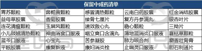 中成药口服制剂中,30个药品保留,其他中成药口服制剂全部从常备目录内剔除。