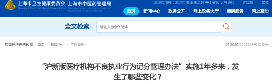 今年9月份,河北省卫健委官网也公布了《河北省医疗机构不良执业行为记分管理办法》明确对医疗机构不良执业行为管理实行一年一周期的累积记分制度,记分结果作为医疗机构校验的重要依据,纳入医疗机构定级、评审、评价、考核的指标体系,并作为行业评先评优的重要参考。