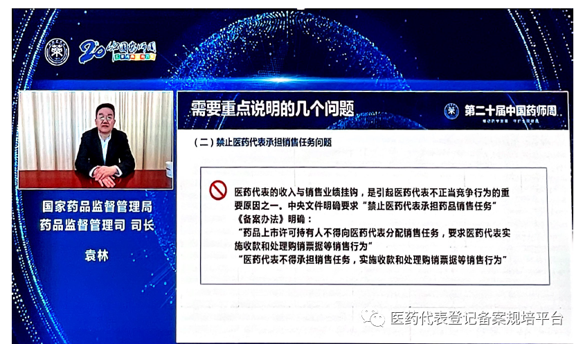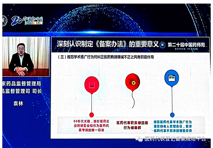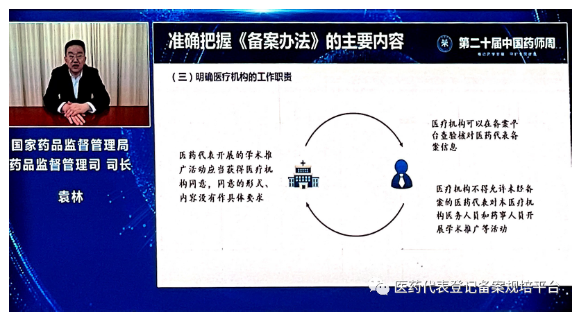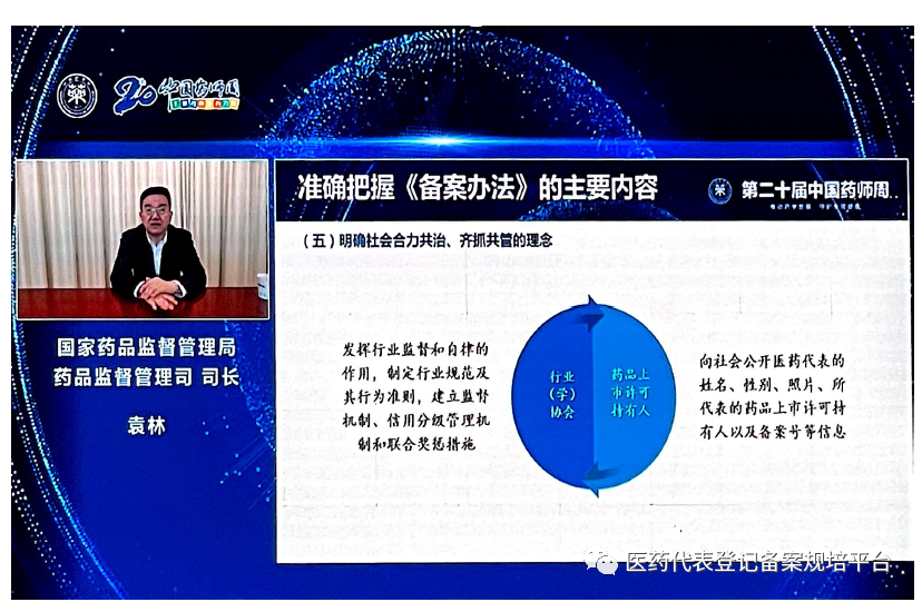 11月28日,官方首次就该《办法》作了较为详尽的阐述,在中国药师周上,国家药品监督管理局药品监督管理司袁林司长作了主题为《落实管理主体责任,发挥社会共治合力,助推医药代表角色价值回归》的报告,以下为演讲部分内容,仅限内部交流学习,供参考。
