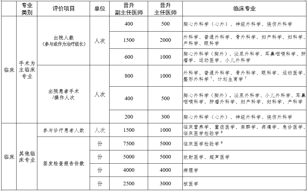注8:出院患者手术/操作人次晋升副主任医师以主刀或一助计算;晋升主任医师以主刀计算。