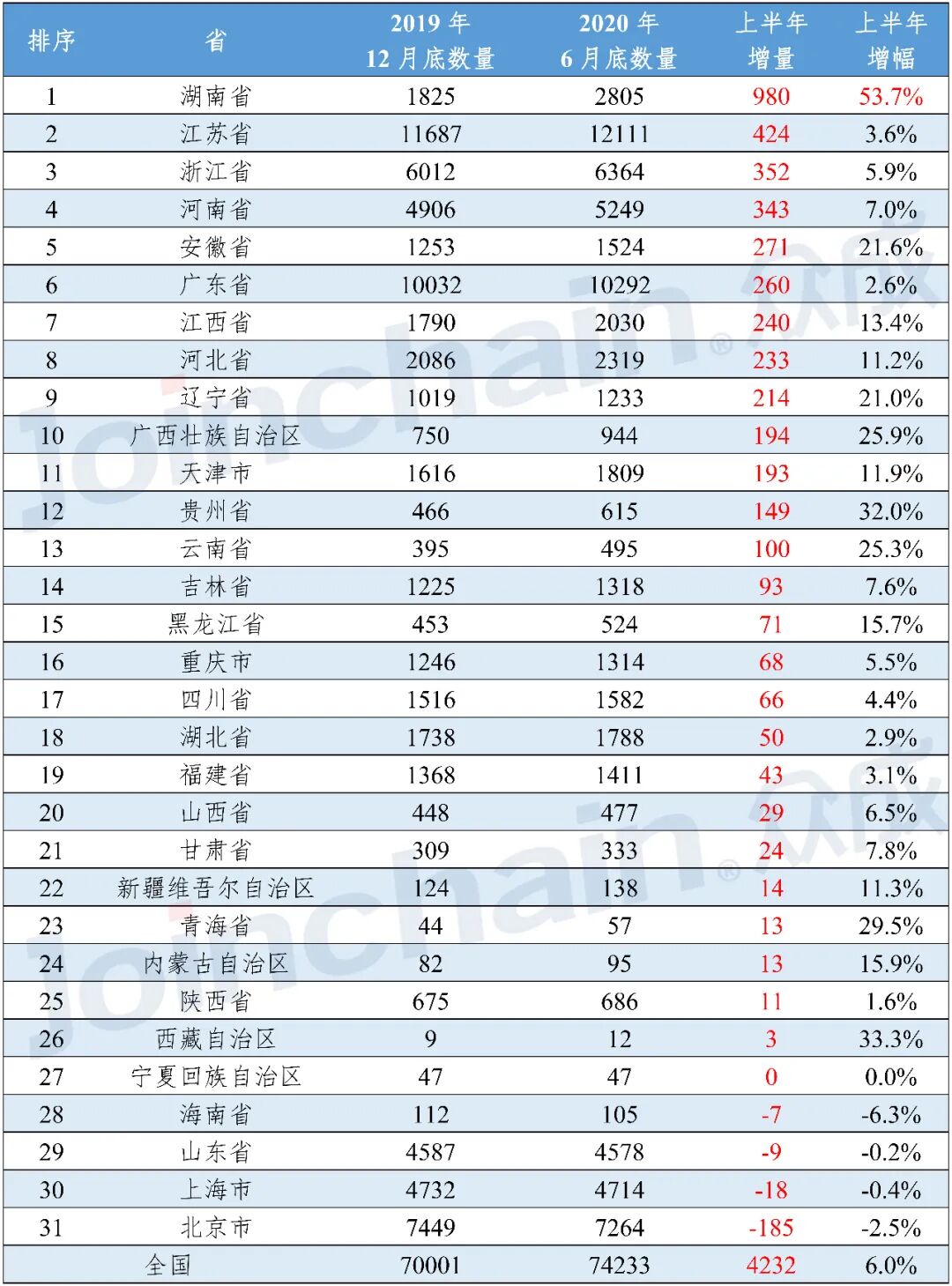 注:上半年增量=2020年6月底数量-2019年12月底数量=首次注册数量-注销数量