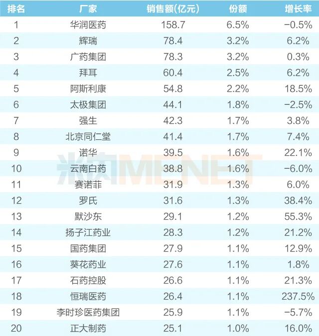 华润、辉瑞、广药……领军企业TOP20