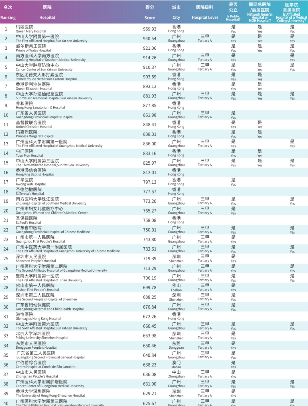 8月29日,第三方医院评价平台“艾力彼观察”发布2019届中国顶级医院100强名单。
